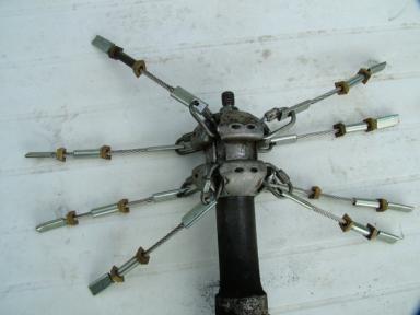 Il d’agit d’une machine électrique composée d’un flexible et d’une tête rotative équipée de 12 câbles appelés « petites masselottes », qui en venant frapper légèrement sur les parois intérieures du conduit, casse et décolle le bistre.